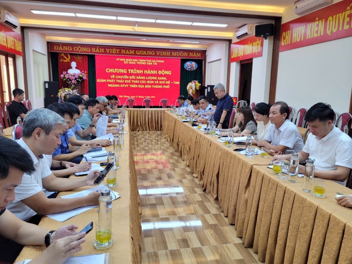 Thực hiện Quyết định số 876/QĐ-TTg ngày 22/7/2022 của Thủ tướng Chính phủ; Quyết định số 3692/QĐ-UBND ngày 24/11/2022  về chuyển đổi năng lượng xanh, giảm phát thải khí Cacbon và khí Metan ngành giao thông vận tải. Sáng ngày 27/9/2024, Sở Giao thông vận tải Hải Phòng triển khai Chương trình hành động  về chuyển đổi năng lượng xanh, giảm phát thải khí Cacbon và khí Metan ngành giao thông vận tải trên địa bàn thành phố; Công văn số 6388/VP-GT ngày 10/9/2024 về việc tổng kết thí điểm xe bốn bánh gắn động cơ chạy bằng năng lượng điện để chở khách du lịch trong phạm vi hạn chế. Dự Hội nghị có các đồng chí lãnh đạo Sở, Trưởng các phòng ban Sở Giao thông vận tải Hải Phòng, Đại diện lãnh đạo các sở ngành, các quận huyện thành phố, các doanh nghiệp vận tải hành khách, taxi, Bến xe…